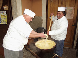PETTORANO - Consueta grande affluenza alla 52^Sagra della Polenta Rognosa a Pettorano sul Gizio nonostante la pioggia che ieri ha caratterizzato la mattinata.Sono state stimate a circa in 3000 le presenze stimate da parte degli organizzatori.Non sono bastati freddo e rigide temperature a fermare i molti turisti, provenienti anche da fuori regione, tante famiglie con bambini e gruppi di cittadini del circondario, che, sotto la pioggia con gli ombrelli, hanno affrontando anche lunghe file pur di degustare il piatto principe della cucina pettoranese la polenta "rognosa".